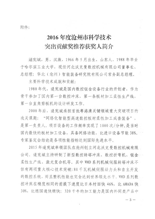 滄州市人民政府授予王煥一先生2016年科學(xué)技術(shù)突出貢獻(xiàn)獎(jiǎng)