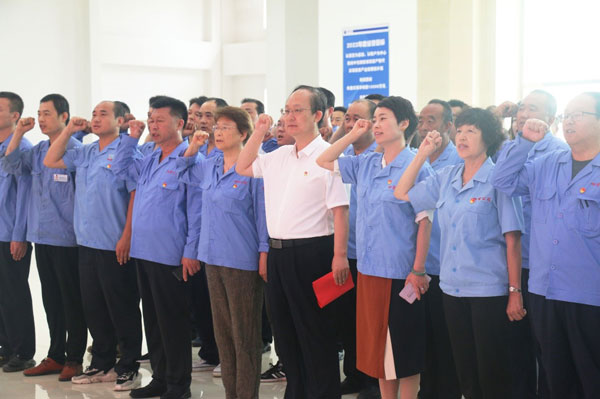 黨支部書記、董事長王煥一,支部副書記、行政副總李蘭舟, 公司顧問王建民,副總經(jīng)理范俊英,副總經(jīng)理王錦松,公司總工程師王希偉,公司顧問段玉新等黨員領(lǐng)導(dǎo)干部,公司全體黨員、部分提出入黨申請(qǐng)的積極分子等110人參加或列席活動(dòng)。李蘭舟主持儀式。