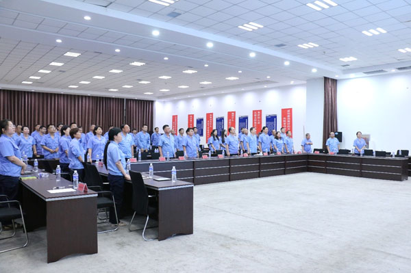 (黨支部書記、董事長王煥一領(lǐng)誓) “起來,不愿做奴隸的人們……”在嘹亮而莊嚴(yán)的國歌聲中,大會正式開始。“我志愿加入中國共產(chǎn)黨,擁護(hù)黨的綱領(lǐng),遵守黨的章程……”在公司黨支部書記、董事長王煥一領(lǐng)誓下,全體黨員重溫入黨誓詞,堅定有力的聲音響徹全場。