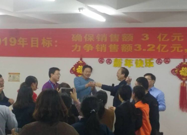 活動第一項:Boss致辭! 董事長首先給大家拜年鞠躬,感謝大家一年來的付出。回顧2018年的艱難與艱辛,社會經濟形勢疲軟,公司雖然緊張但已經是同地區(qū)過的最好的大公司,感謝大家這一年對公司的信任與支持,同時也肯定了2018年是公司業(yè)績最優(yōu),技術突破最多,成績最好的一年。 展望2019年,國家政策重大利好,公司度過了最艱難的時期,資本支持足,公司將進入高速發(fā)展階段。要求利潤由兩千多萬要邁向五千多萬,并挑戰(zhàn)六千萬目標?磥硇』锇閭円獢]起袖子加油干啦。。 董事長強調公司由新三板改創(chuàng)業(yè)板或科創(chuàng)板,公司產品屬于高精尖,國家重點支持的產業(yè),是幾代人干不完的事業(yè)。大家要對公司有信心,而且爆料董事長將給予一部分老員工與干部低價購買股份的機會,公司是混合所有制公司,希望大家共同都享受公司的利潤分紅。小伙伴們,賺錢的機會要來了。不知道誰會有這樣的榮譽呢,總之大家好好干,衷心的把事業(yè)做好總會有回報的。 接下來董事長重點強調了對所有參加的員工提出了工作要求,大家要注意了,接下來各部門開會可要好好分析工作如何開展,如何達到董事長的要求: 1 行政管理將是2019年重要的工作,彌補公司行政管理的短板,各部門要共同加強職能部門管理意識,建立流程化思維,服務好生產與銷售。 2 要積極開展批評與自我批評工作,用好國家領導人都在用的管理工具。使全員工作的同時,有批評有獎勵有評價有意義。吾日三省吾身! 3 提出電子商務部要加強設計思維,多開發(fā)高端日用品,不走量的路線,讓我們用的茶杯酒杯都是我們自己的中硼產品,把中硼這一優(yōu)勢材料推廣出去。 考核部提醒大家,接下來的工作大家要好好思考了,各部門會議要強調2019年工作該如何開展了。