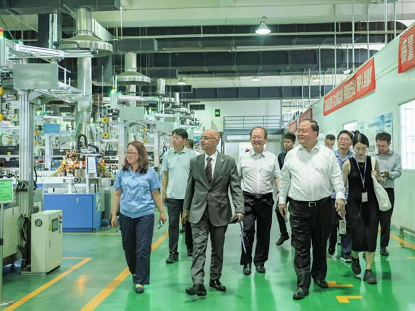 深入生產(chǎn)一線,見證四星魅力 隨后,法赫米先生一行深入公司生產(chǎn)現(xiàn)場,實地參觀了預(yù)灌封注射器生產(chǎn)線、西林瓶生產(chǎn)線及玻管生產(chǎn)線。整潔有序的生產(chǎn)環(huán)境、高度智能化的生產(chǎn)設(shè)備,無不彰顯著四星玻璃的現(xiàn)代化生產(chǎn)能力和科技實力。法赫米先生對四星玻璃的智能化水平給予高度評價,并對產(chǎn)品質(zhì)量表示了充分信心。